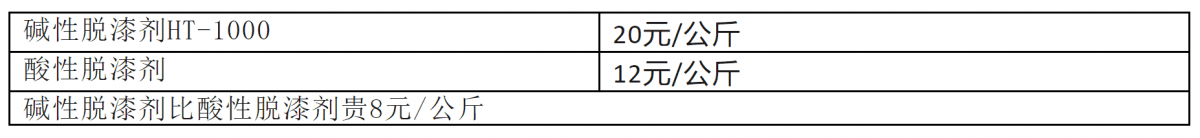 碱性脱漆剂与酸性脱漆剂的价格对比: