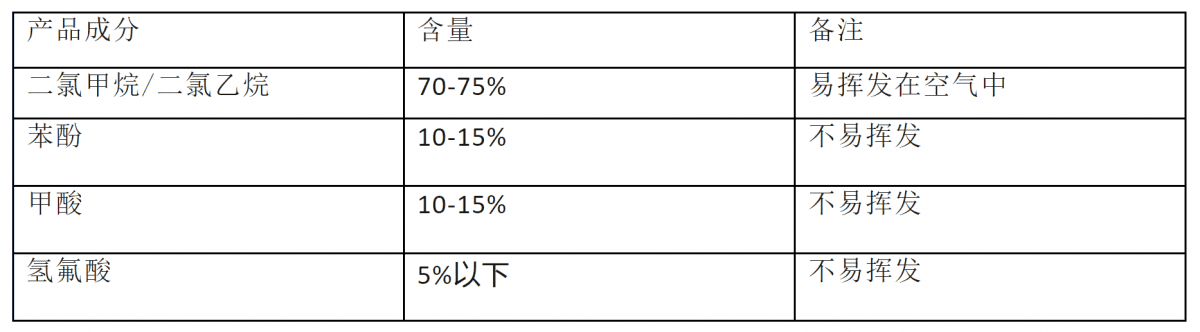 并且酸性脱漆剂配方中,二氯甲烷作为主溶剂,基本会在空气中逐渐挥发。剩余的成分主要是苯酚与酸类添加剂。因此在使用一段时间后,苯酚的浓度会越来越高。