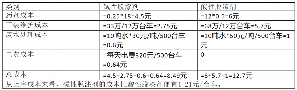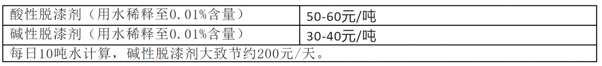 碱性脱漆剂与酸性脱漆剂的使用用量对比: