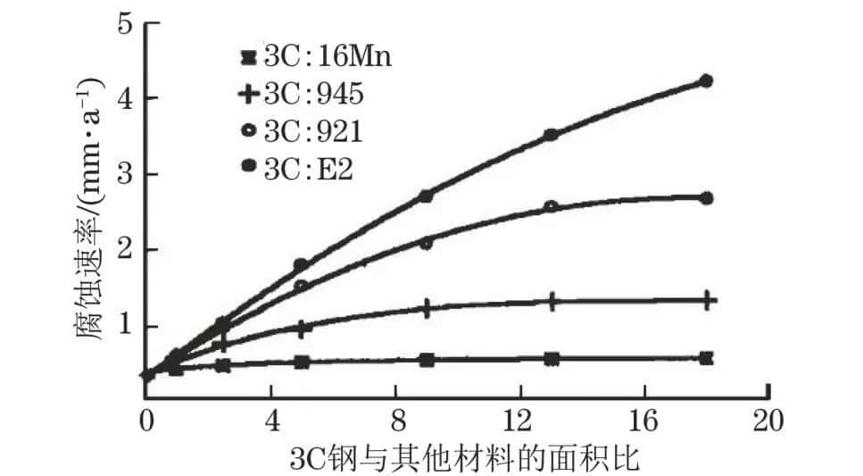 图1 3C(碳钢)的腐蚀速率与阴阳极表面积比的关系