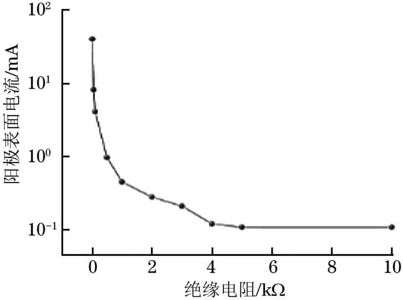图2 高强钢阳极表面电流随绝缘电阻的变化